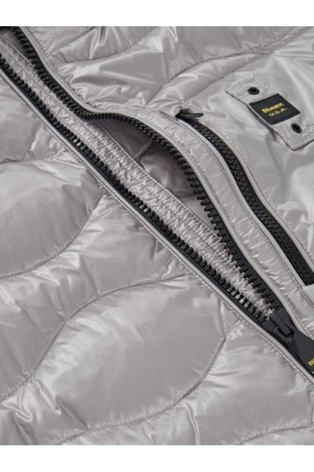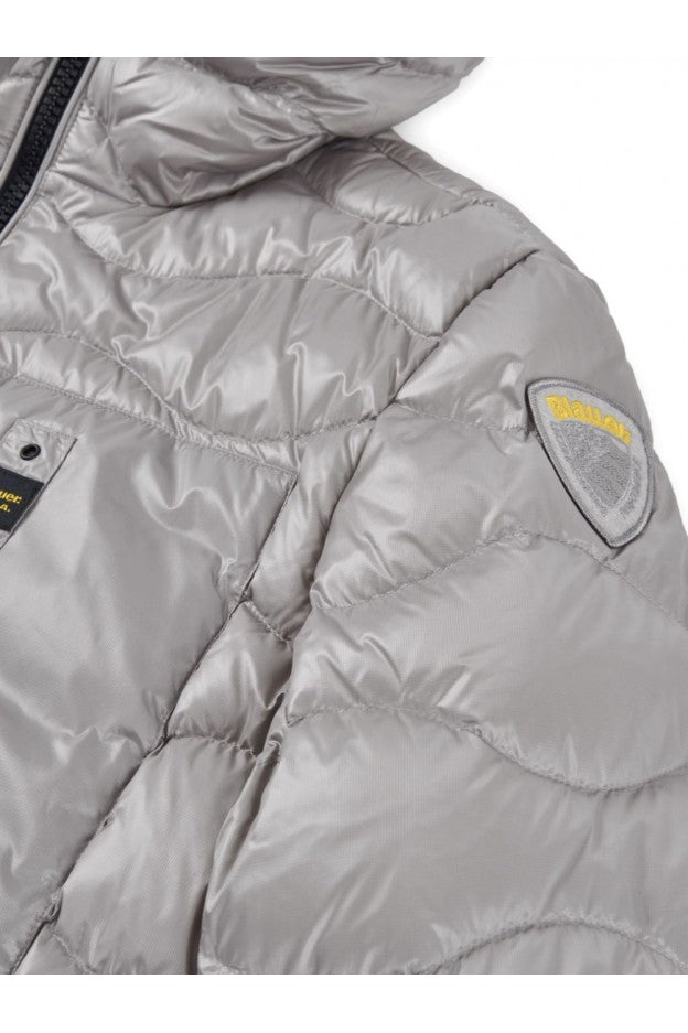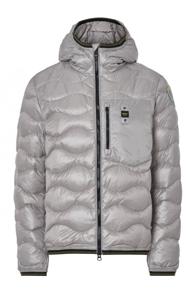 Piumino trapuntato ad onde orizzontali. Taschina applicata sul petto a sinistra per donare al capo iconico Blauer un tocco più funzionale. Imbottitura naturale in piuma, calda e non ingombrante; dedicato a chi vuole essere sempre alla moda in ogni occasione.