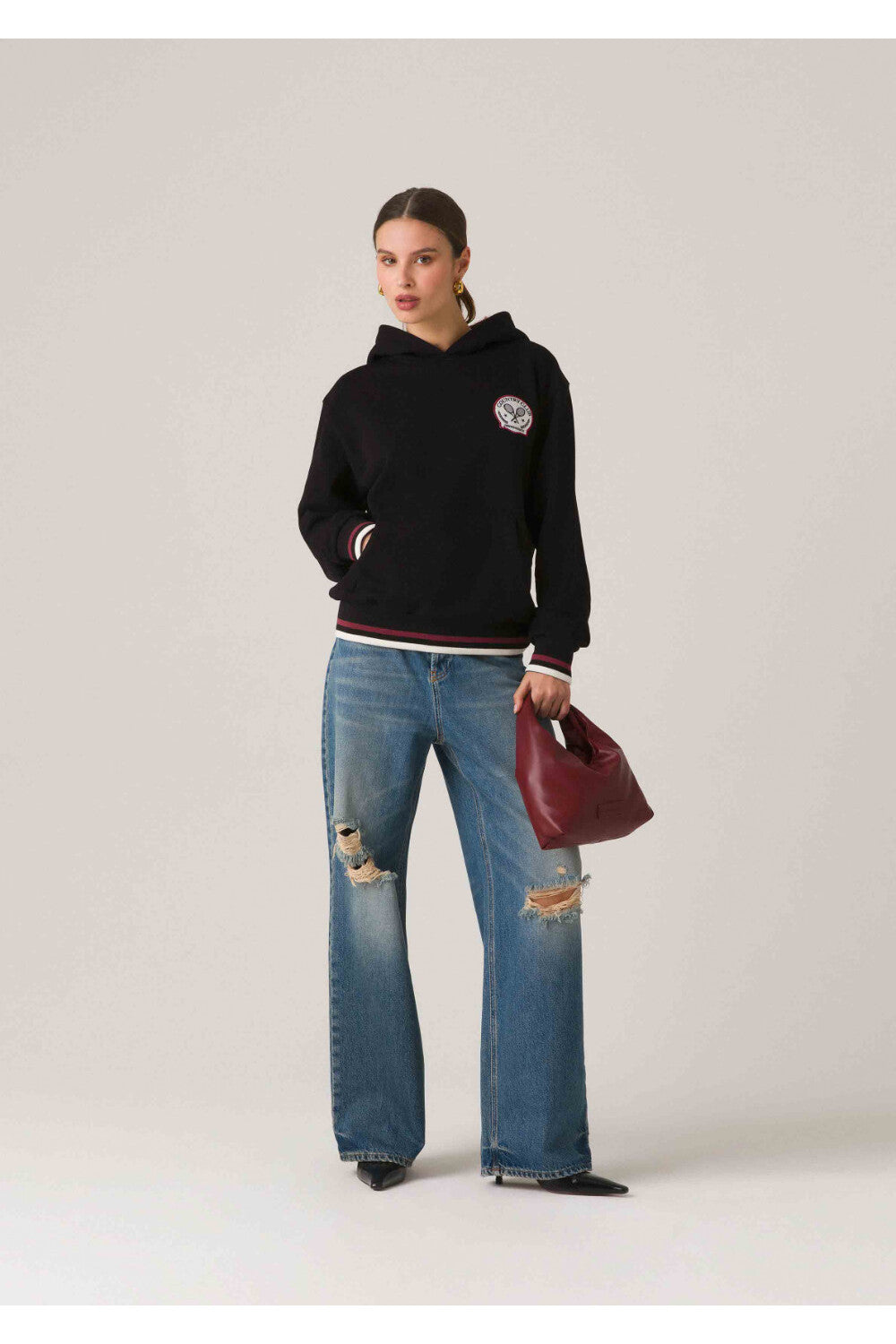Felpa cappuccio con fondi smacchinati e patch tennis
