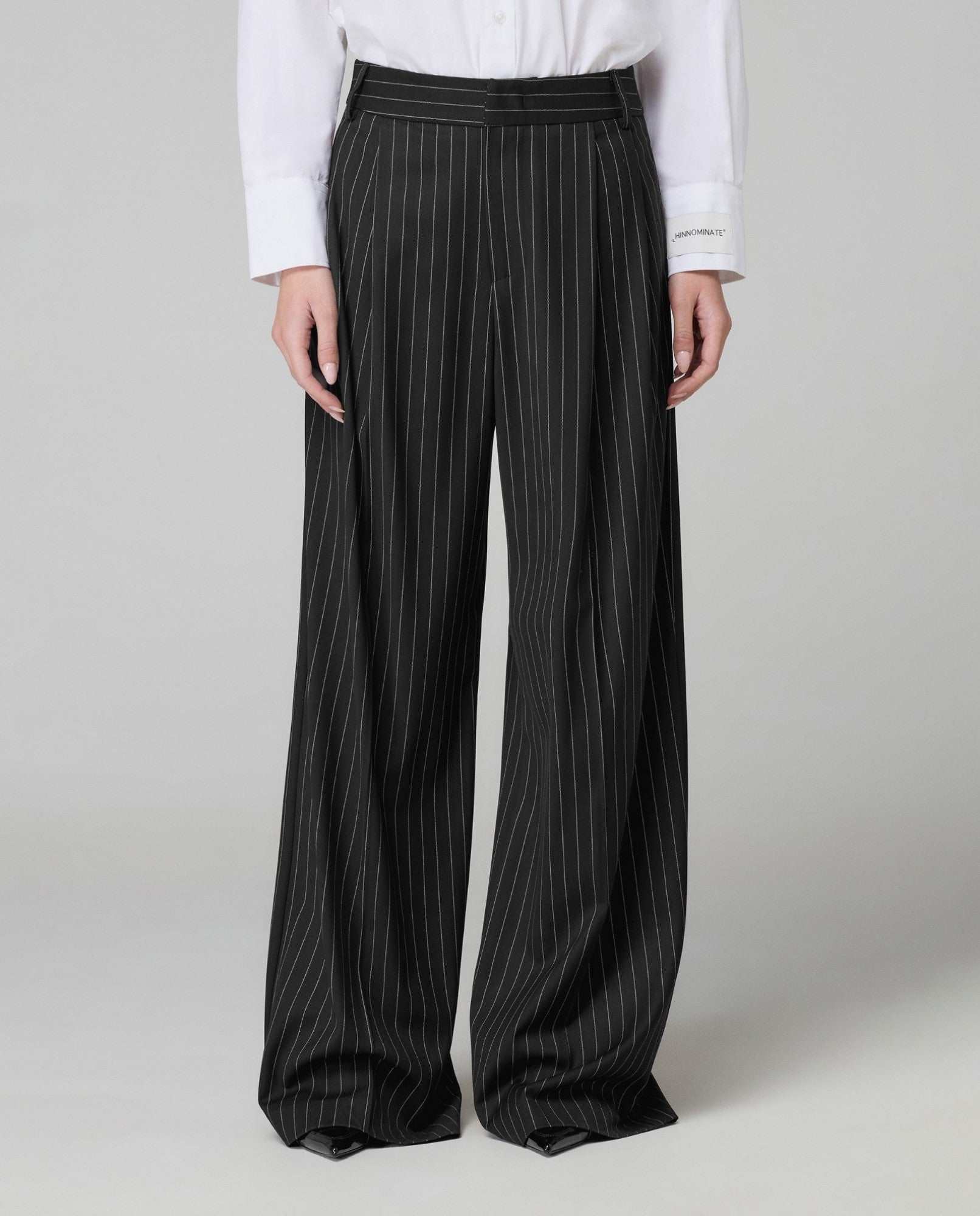 Pantalone Over Gessato Con Pences • Nero HINNOMINATE