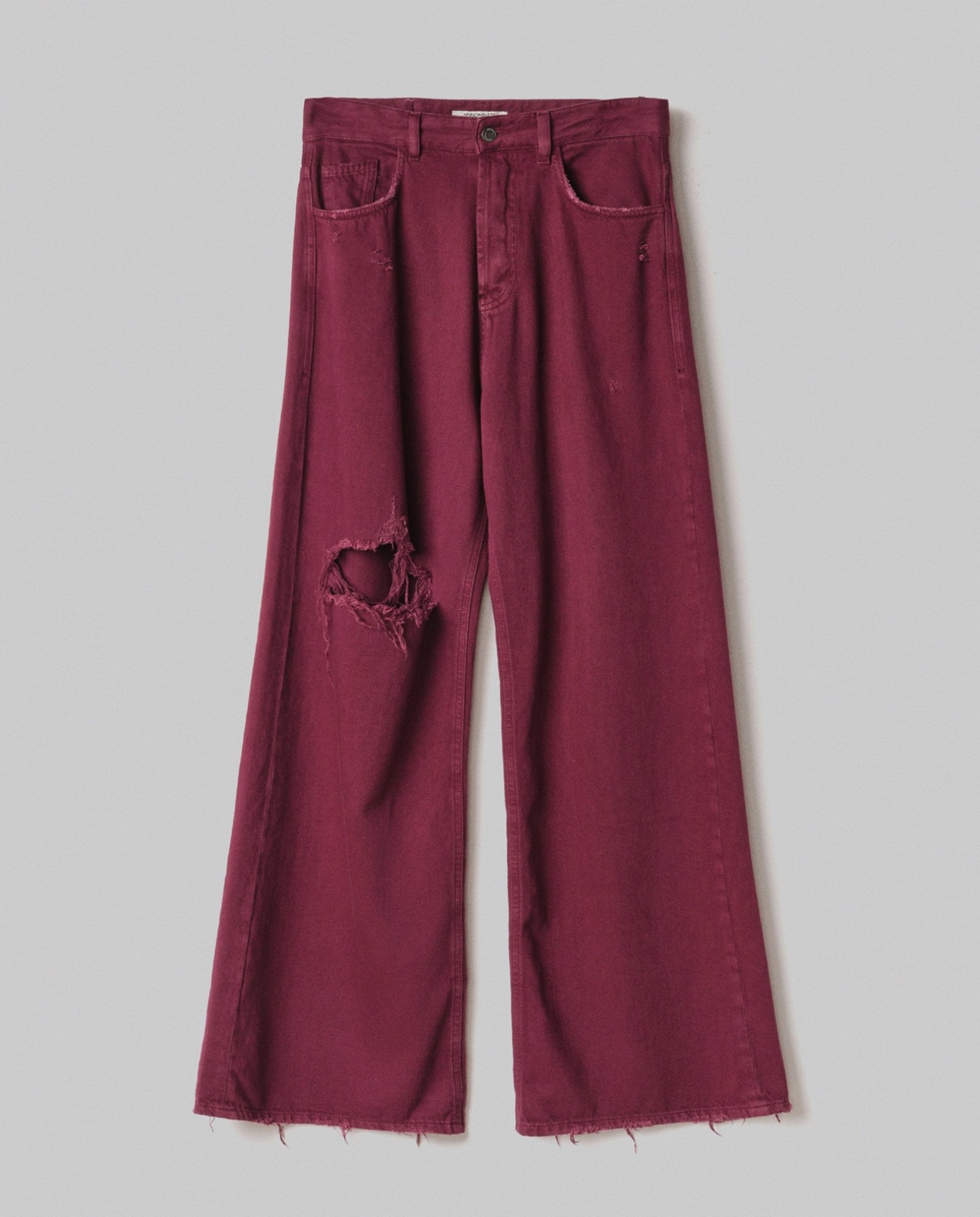 Pantalone In Bull Denim A Palazzo Con Rotture • Bordeaux HINNOMINATE