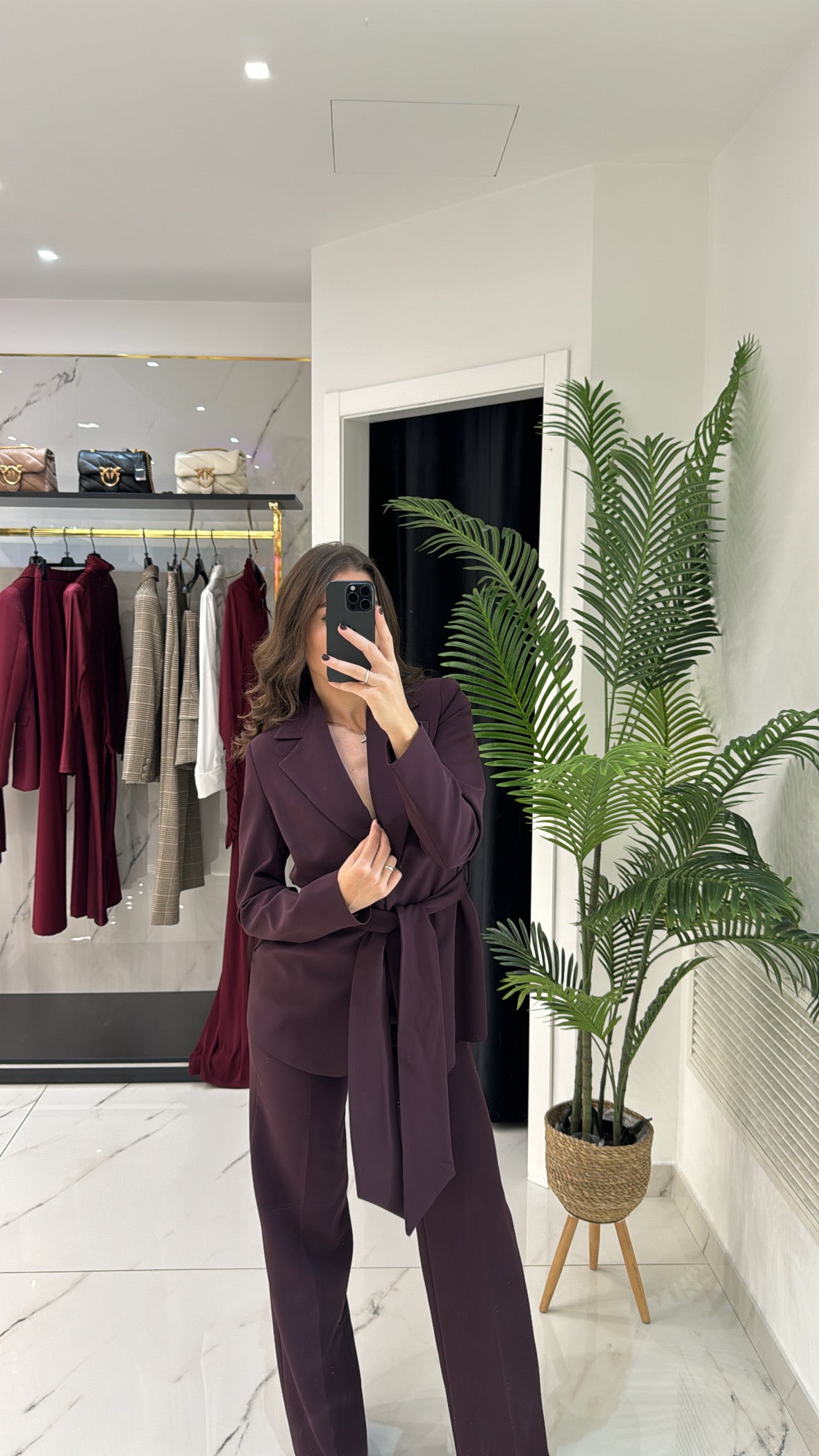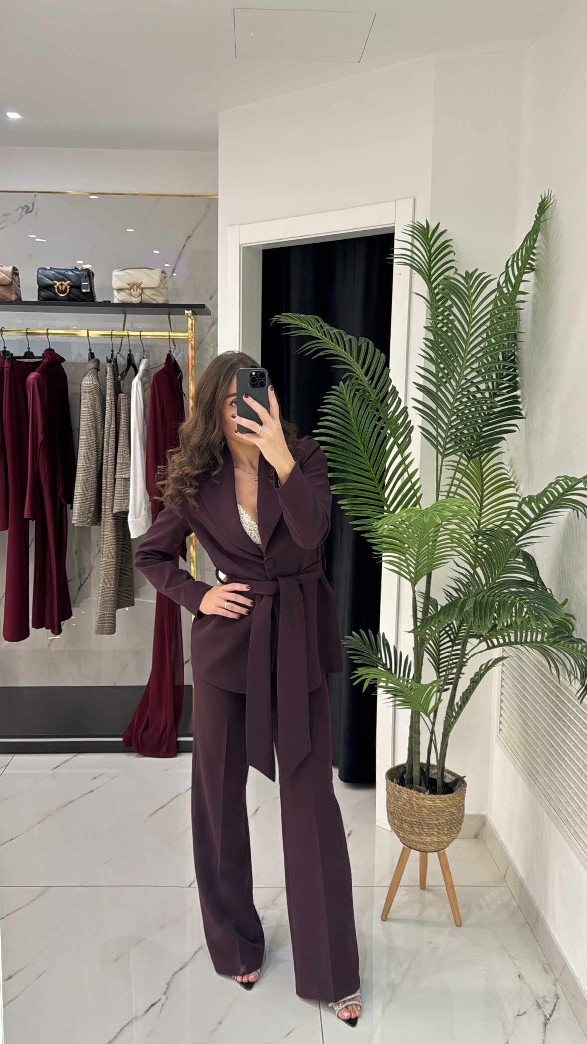 Giacca morbida con cintura e pantalone palazzo vita alta