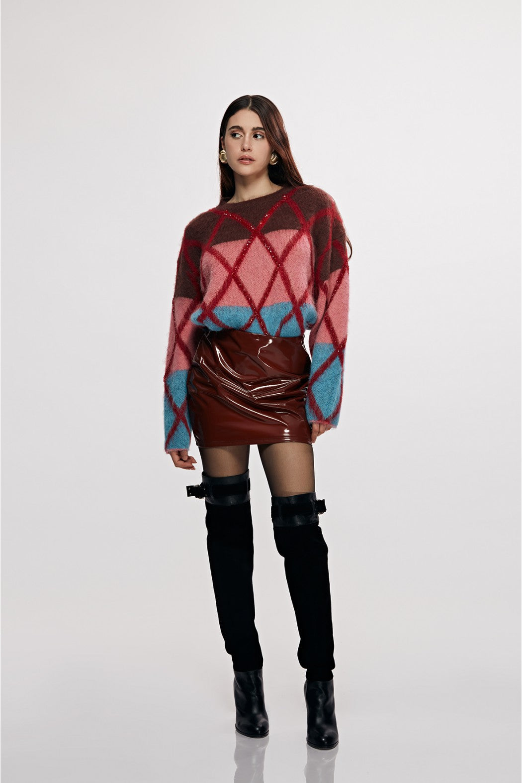 Maxi pull multicolore scollo tondo.
