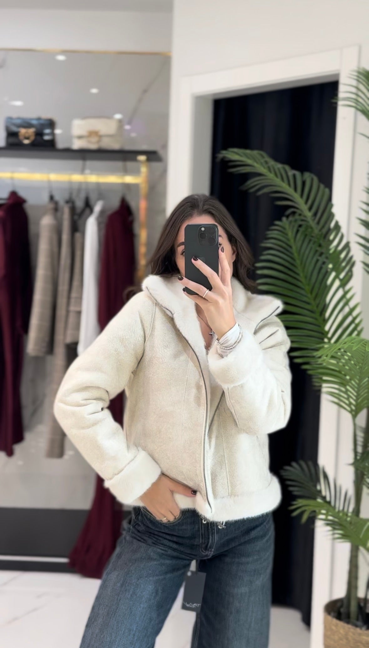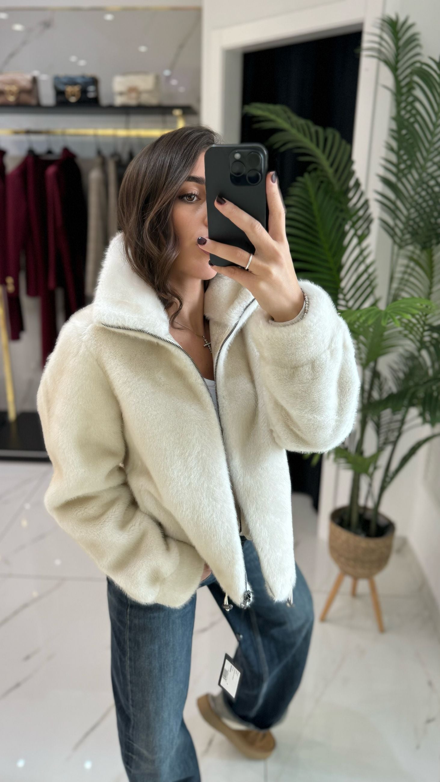 Giacca in ecopelliccia reversibile.