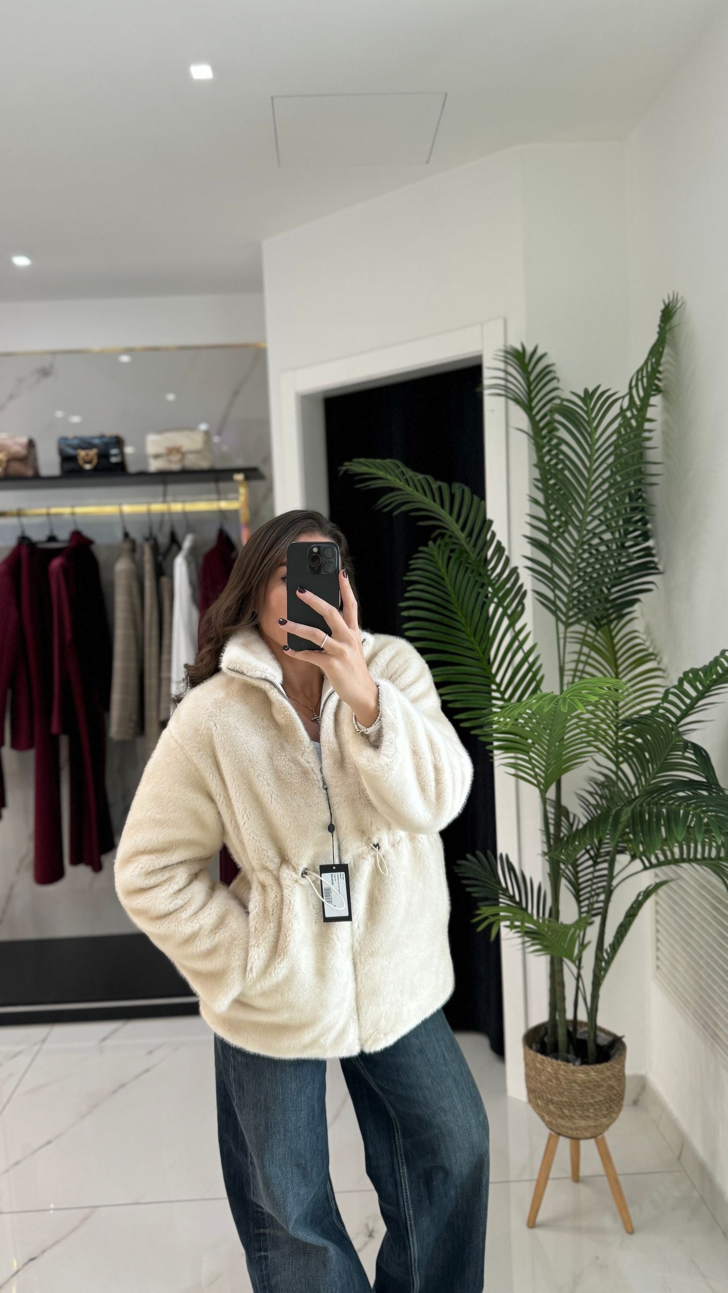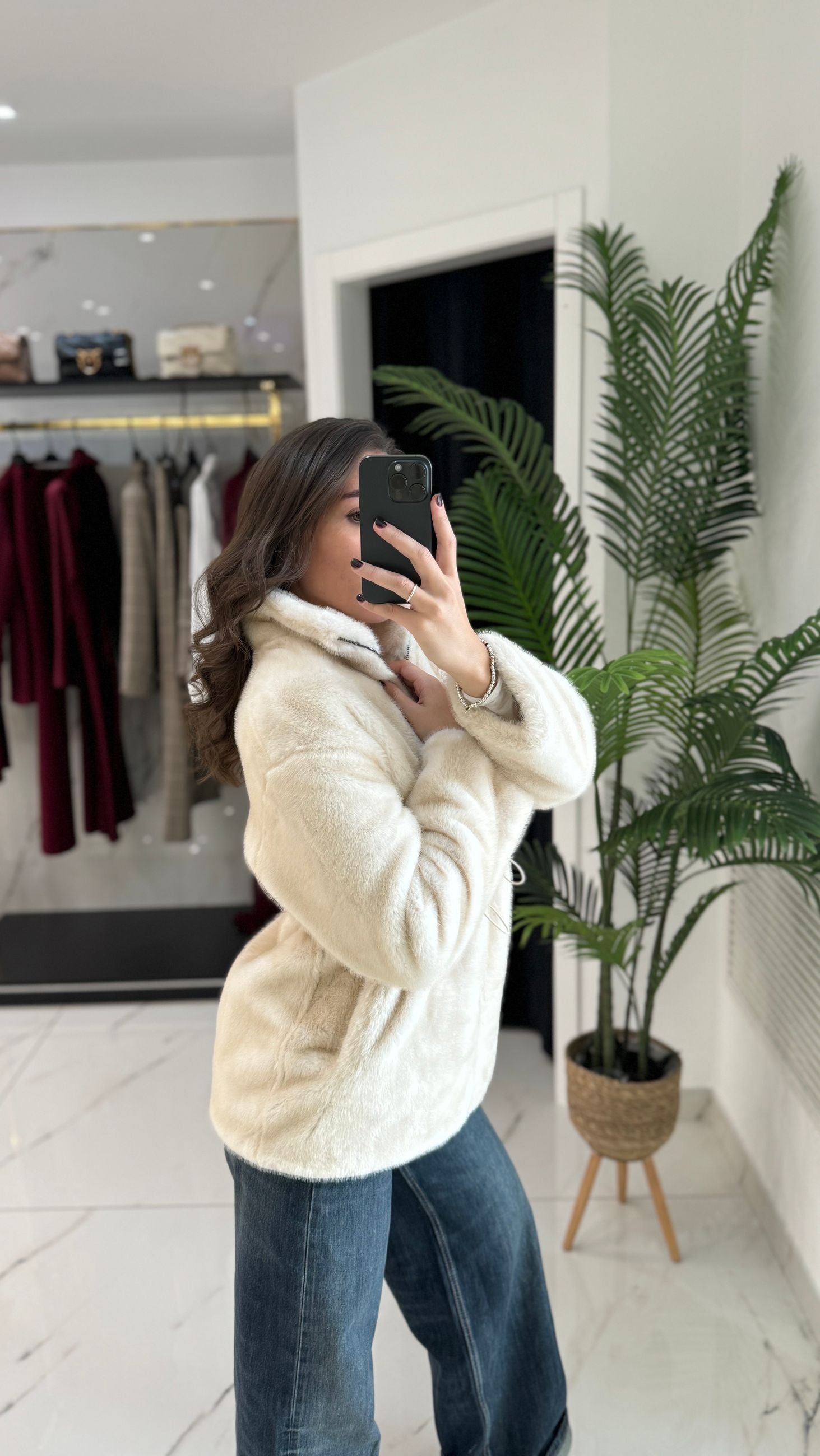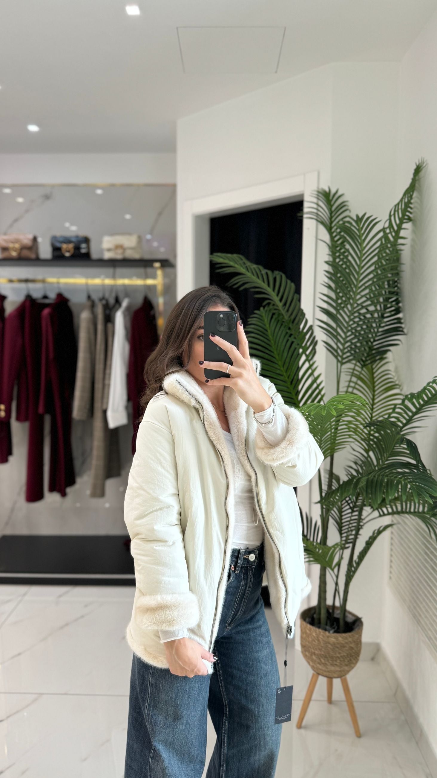 Cappotto mini lunghezza ecopelliccia reversibile con zip
